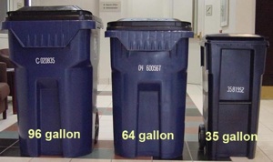 This is our deluxe service. All the frills and thrills you could expect while still providing good dependable curbside garbage collection. You may select from 3 different size cans to match your household needs. Our toters are available in 35 Gallon, 65 Gallon and our LARGE 95 Gallon.